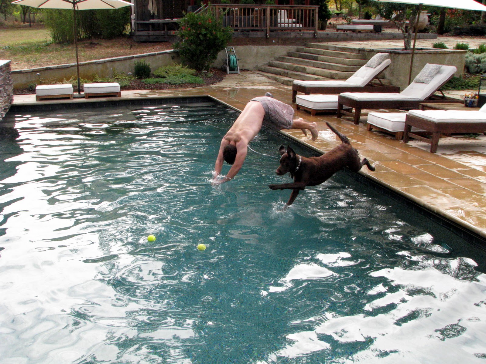 Then daddy showed me a new game where we jump into the swimming pool together after the tennis balls and see who can get them first.