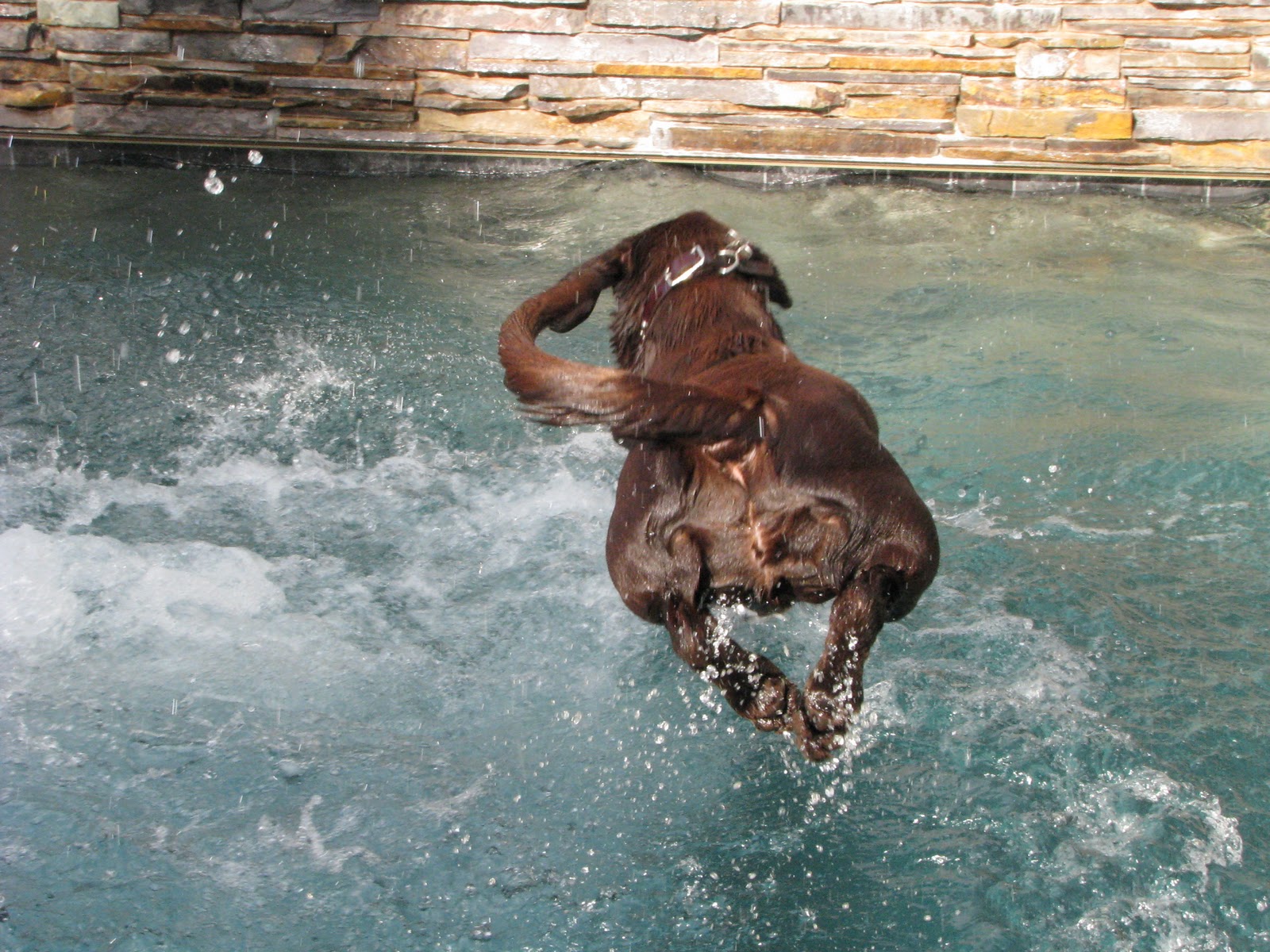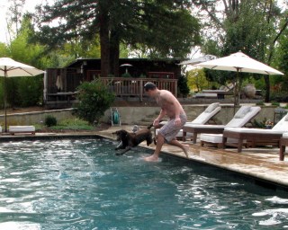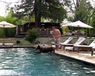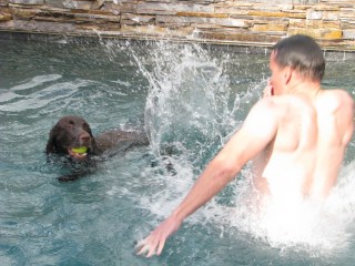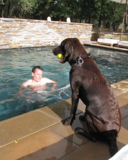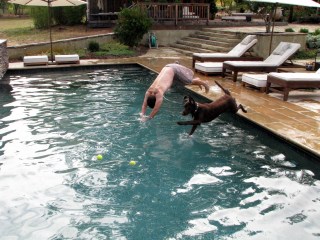 Once he was out of bed, I showed daddy that the best remedy was to jump into the pool, head and paws first.
