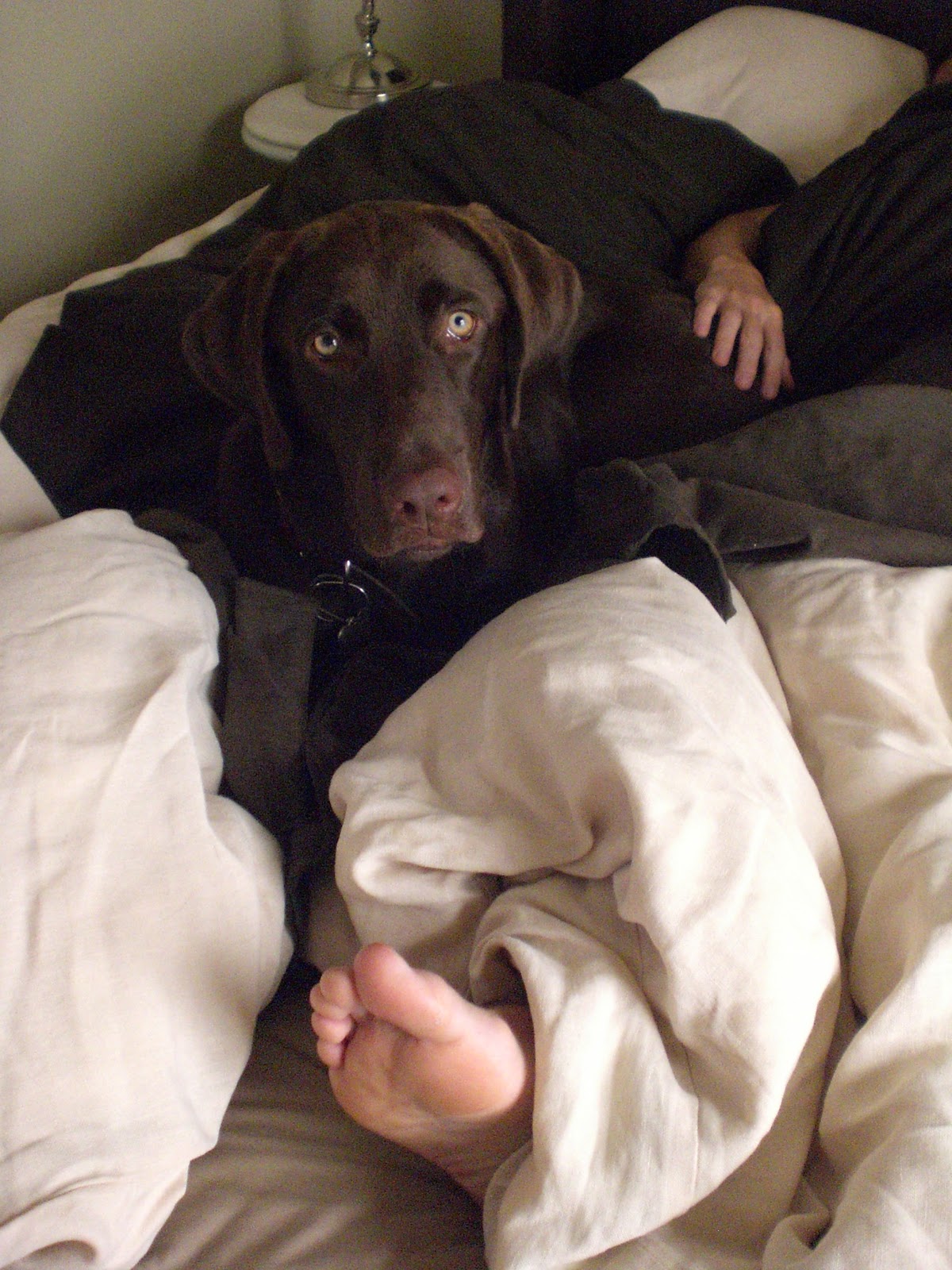 Daddy was not on his best behaviour. He had way too much food called ‘wine’. I was not sure why a type of food would be called that until the next day, when dad did a lot of whining. I usually do that when I want to go outside but daddy didn’t want to go anywhere – he wouldn’t even get out of bed! Eventually I was able to coax daddy out of bed by licking his toes….