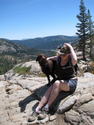 When I wasn’t chasing tennis balls, I took mummy and daddy hiking. Here are mummy and me at the top of one of the mountains after a long, steep climb up. It was very windy up there. Mummy kept losing her hat and I kept getting wind in my jowls…very strange….