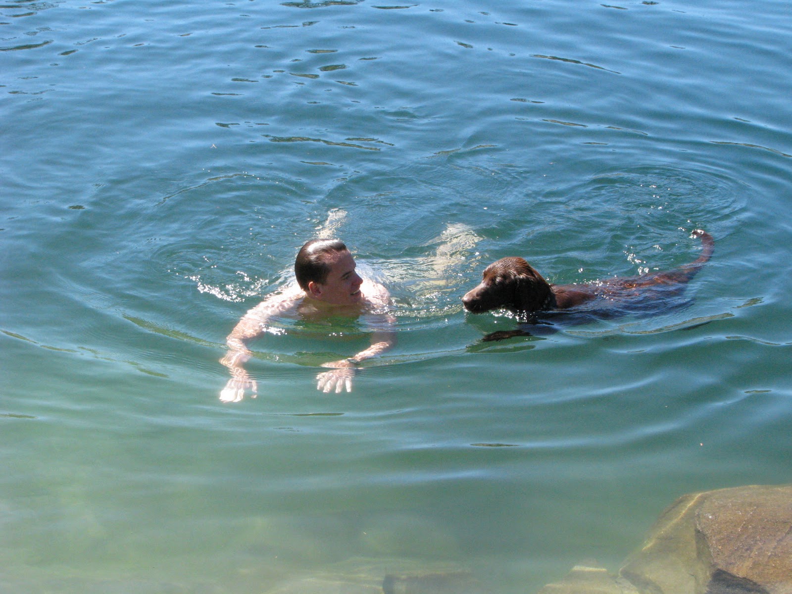 Then he would swim around in the lake with me and I would lead him back to the shore.