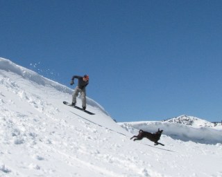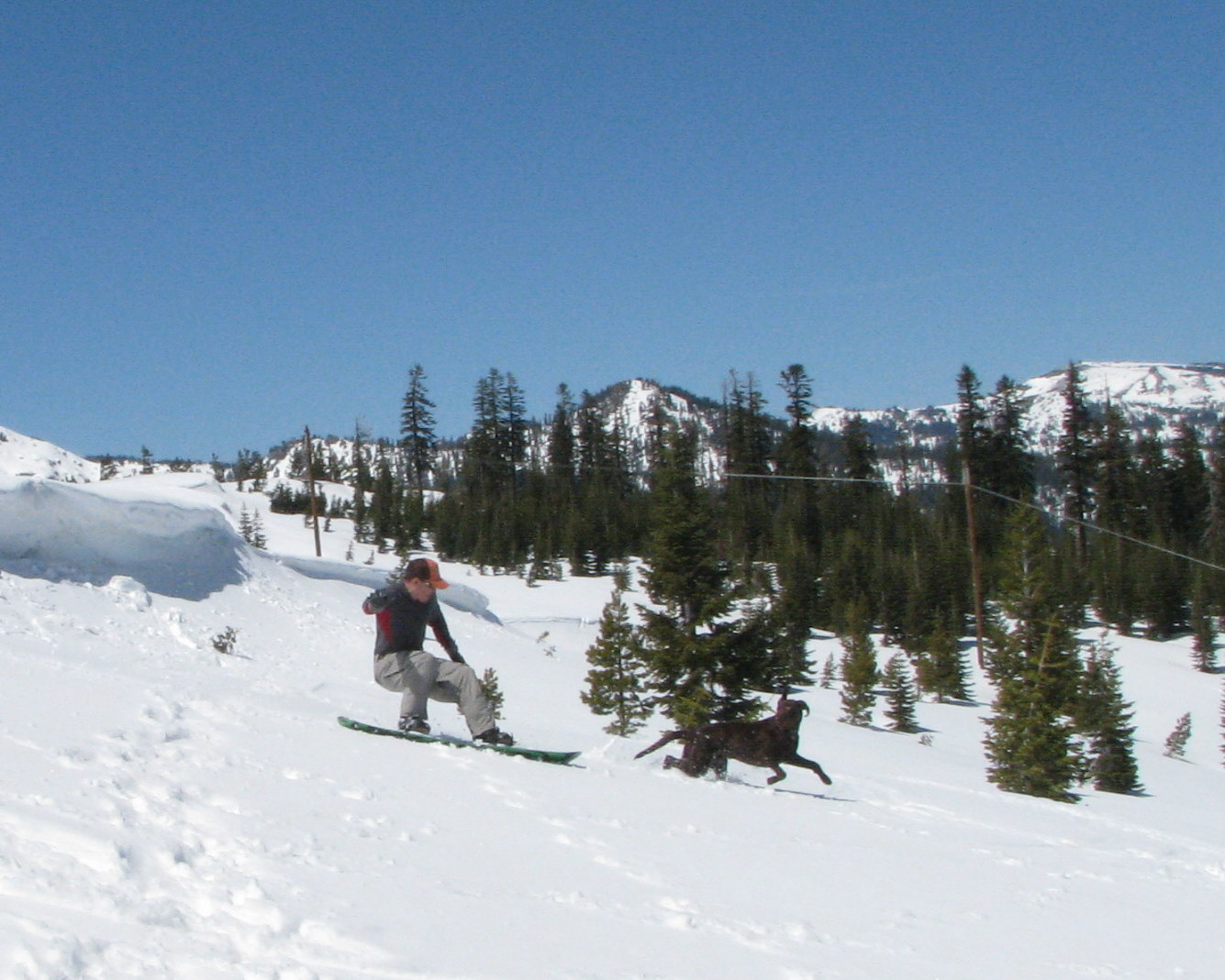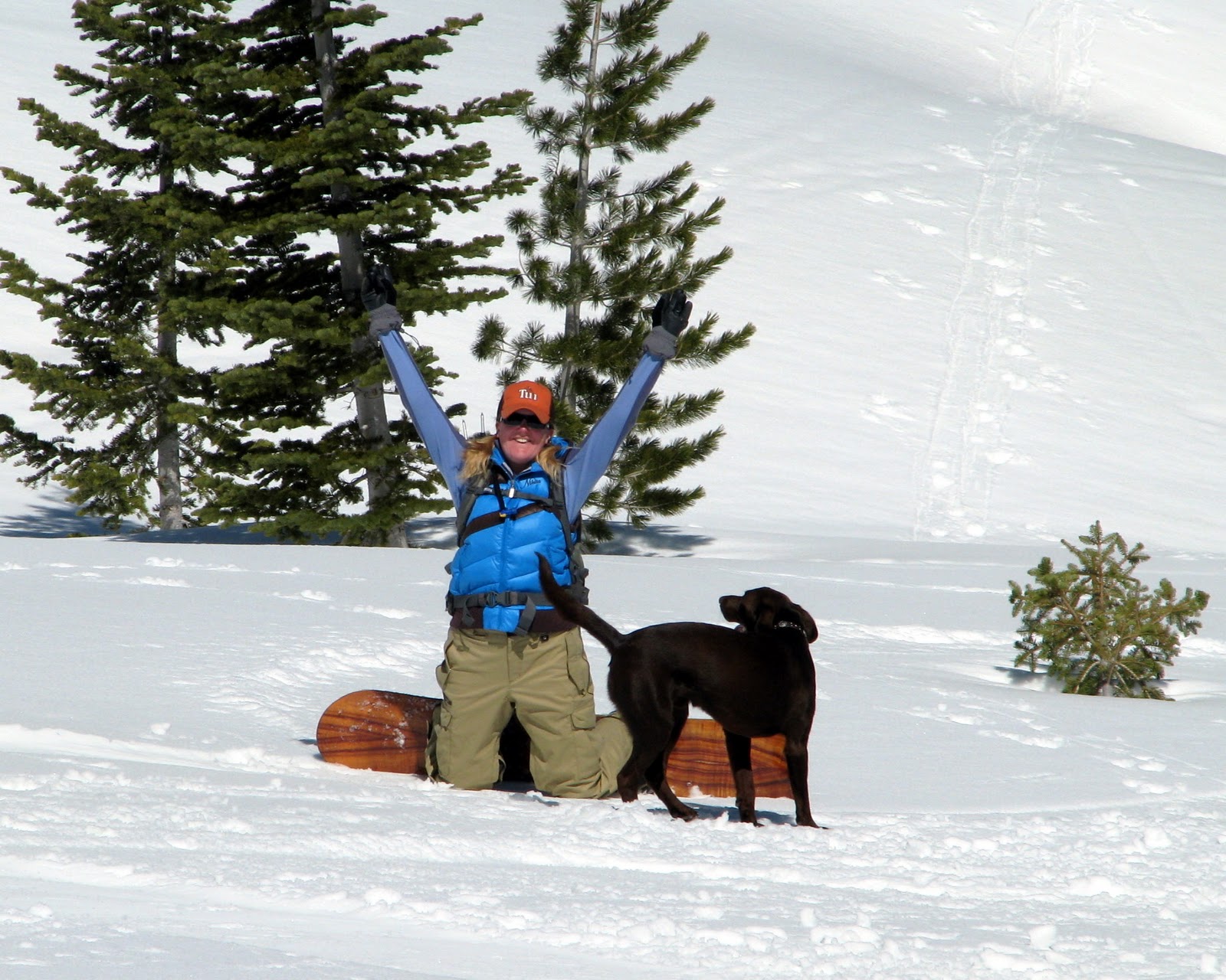 I love back-country snowboarding. OK…I don’t snowboard (I am a dog after all) but I love to run around in the snow, carving my own lines in the fresh pow.