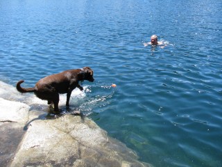 Later on mummy and daddy came up to Tahoe and we all went to Lost Lake. It was another hot day and so we all had a great time swimming in the cool alpine lake…even with tennis balls!