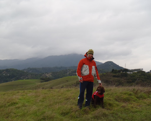 On the morning of Christmas Day, I was allowed up on the bed with mummy and daddy and we had a Christmas cuddle. I love starting the day off that way – their bed is much bigger than mine. I like daddy to wrap me up in the duvet so that I can pretend that I am in a den.It’s a tradition but every year I take mummy and daddy out for a Christmas hike. It’s great for working up an appetite for Christmas dinner. The weather was drizzly and cold this year but we still had a romp up on Ring Mountain. The view over to the city wasn’t bad either.