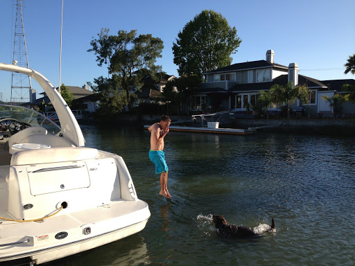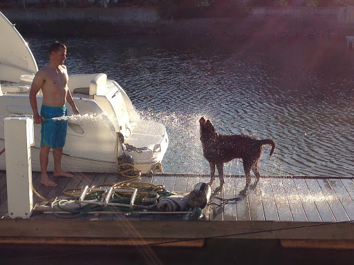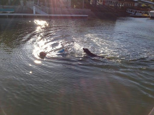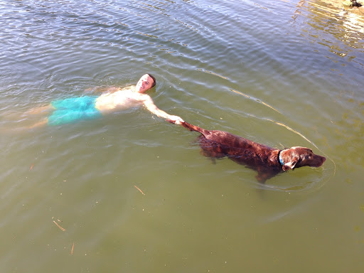 Independence Day seems to be a day when I do a lot of things on my own because humans sit around, eat BBQ food and drink wine and margaritas. That is all fine for them but it means that they don’t spend as much time throwing tennis balls into the water for me to fetch. I spent most of the afternoon swimming around in the cool bay water. Eventually daddy decided that he was so hot from sitting in the sun that he had to jump in the water and join me to cool off.