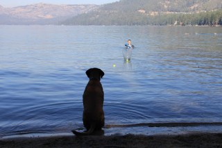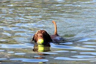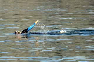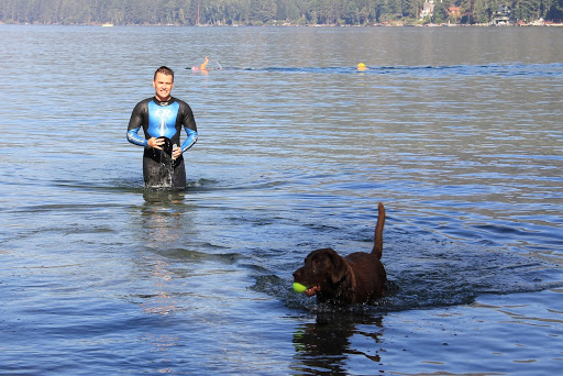 Here’s me. I swim close to shore to fetch the tennis balls that mummy throws out into the lake for me to fetch. I too exhibit perfect form like daddy.