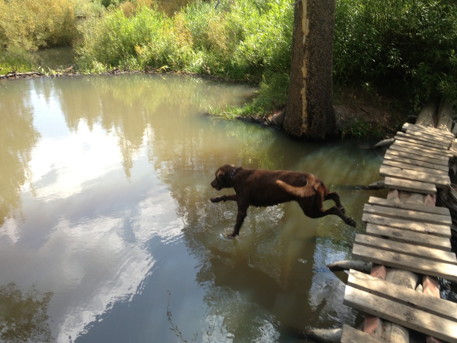I found a bridge to use as a diving platform. if there is one thing better than swimming, its diving. The bridge was a little rickety and some of the boards were missing so it wasn’t a very stable diving platform. It made it really difficult to jump into the water…instead of my usual flamboyant dives, I did a few less than graceful belly flops.
