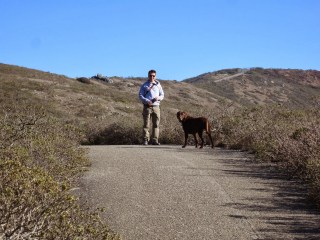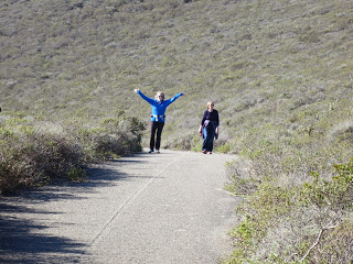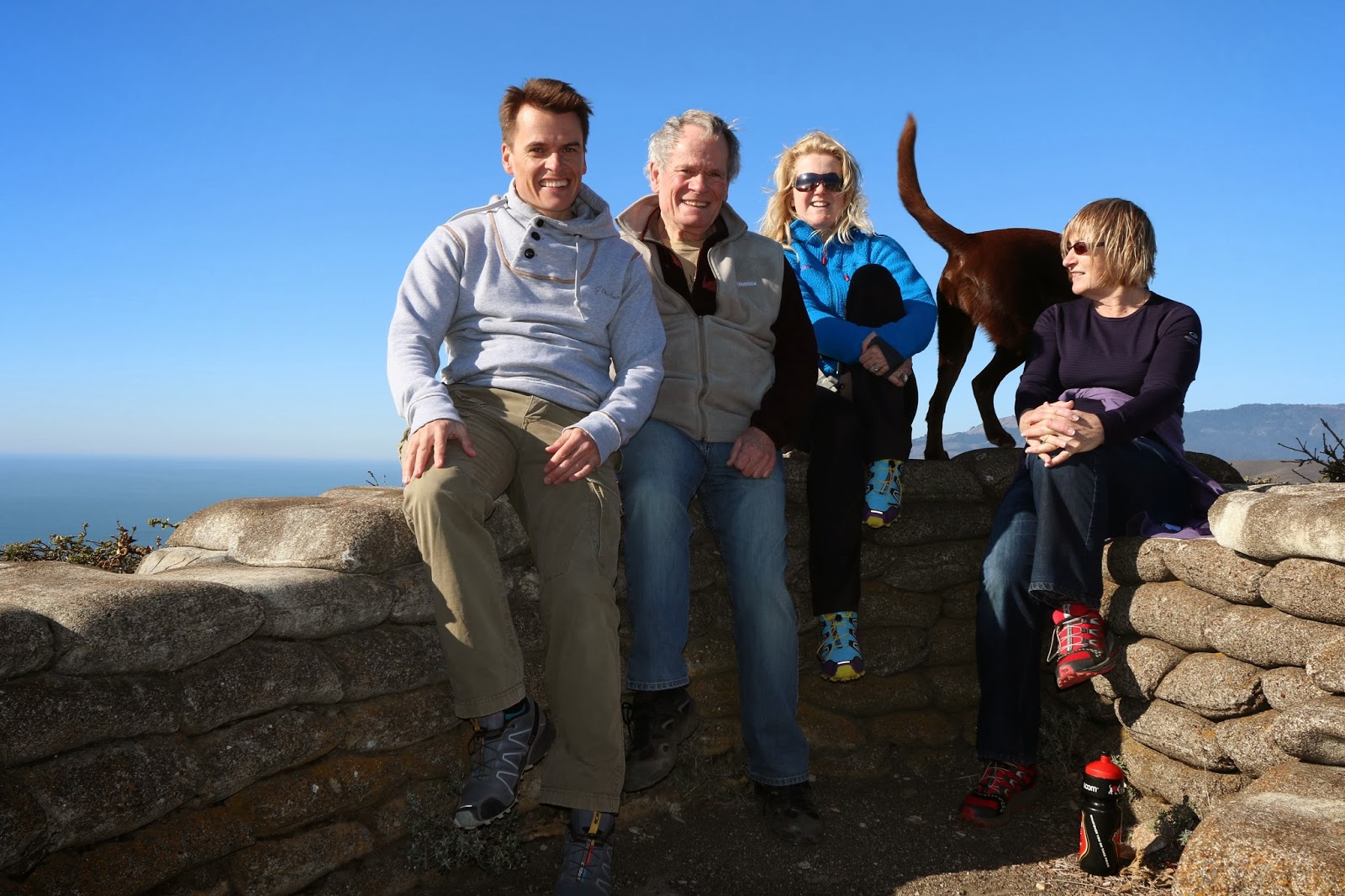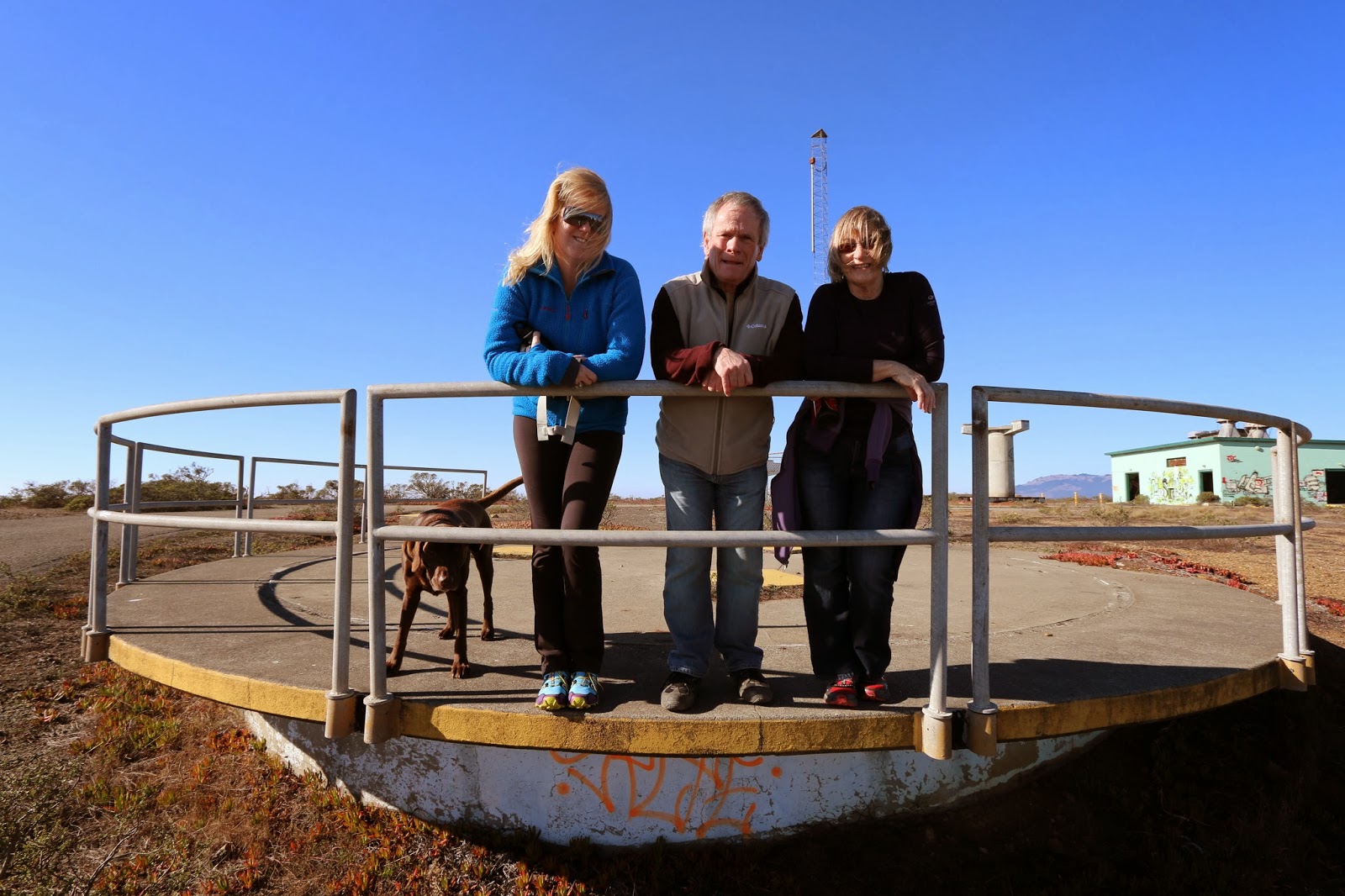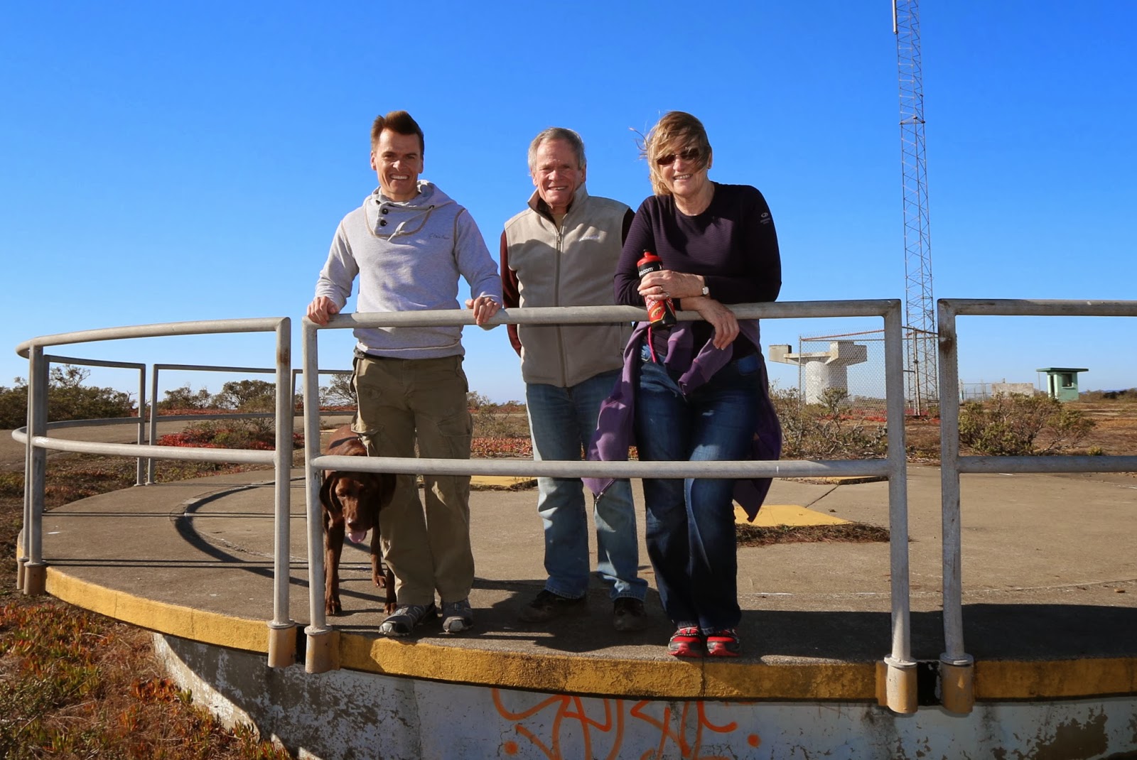 Once at the top of the climb up Hill 88, we reached the former radar site from which we had the most amazing panoramic view of the San Francisco bay. Everyone took turns having their photo taken with me. First up was mummy with Peter and Carol.