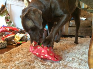 Well, what a wonderful time I am having this Christmas! I got a whole bag full of presents!! After I retrieved each present (because after all, I am a Labrador retriever!), I gave it a good sniff to try and guess what was inside.