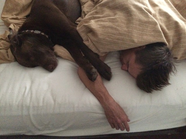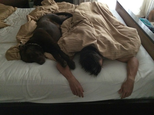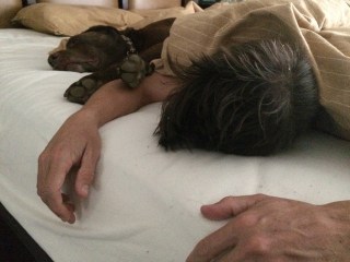 Getting daddy out of bed is very difficult. I prod him a lot but all he does is shift positions.