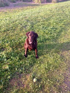 Every now and then I give mummy a chance to get the ball so that she can throw it for me. Well at least I give that impression. As soon as she gets close enough to pick it up, I dart in and steal it! Here I am giving her a false sense of security that she can beat me to it this time. As you can see, it makes me smile just thinking about how futile that is!