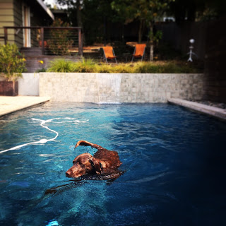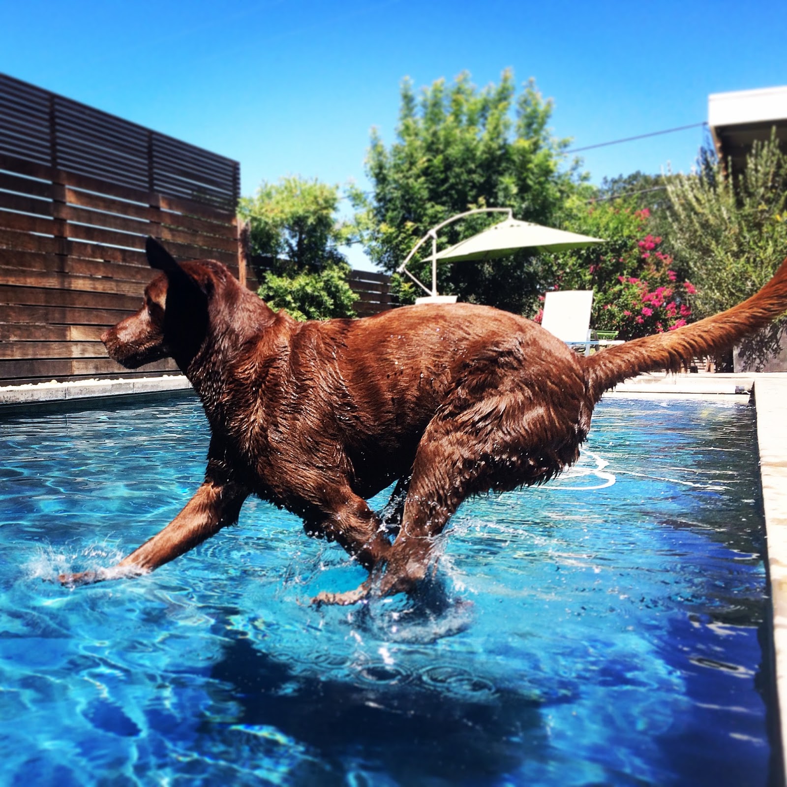 Most recently we rented a house in the Sonoma wine country. It had a great saline pool and I was allowed to play in it all the time! I had so much fun swimming around and around.