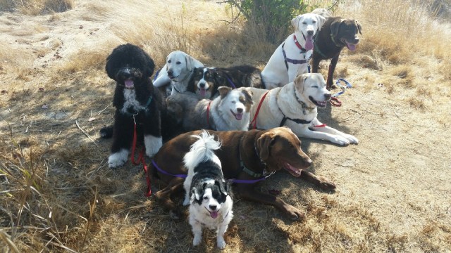 During the weekdays, I hang with my wolf pack. We are a diverse mix of breeds, colors, shapes, sizes and personalities. As you can see, I like to be at the center of it all. My dog walker Leigh thinks we are all lined up for her but it’s really because I told the gang to behave. 🐾