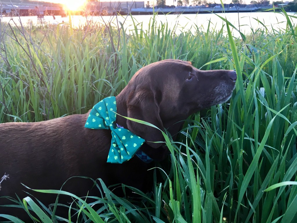 I am not sure who St. Paddy is but he must be important because mummy made me wear this fancy bow tie for my morning walk. I like it because it’s green and green is my favourite colour because it’s the colour of tennis balls!