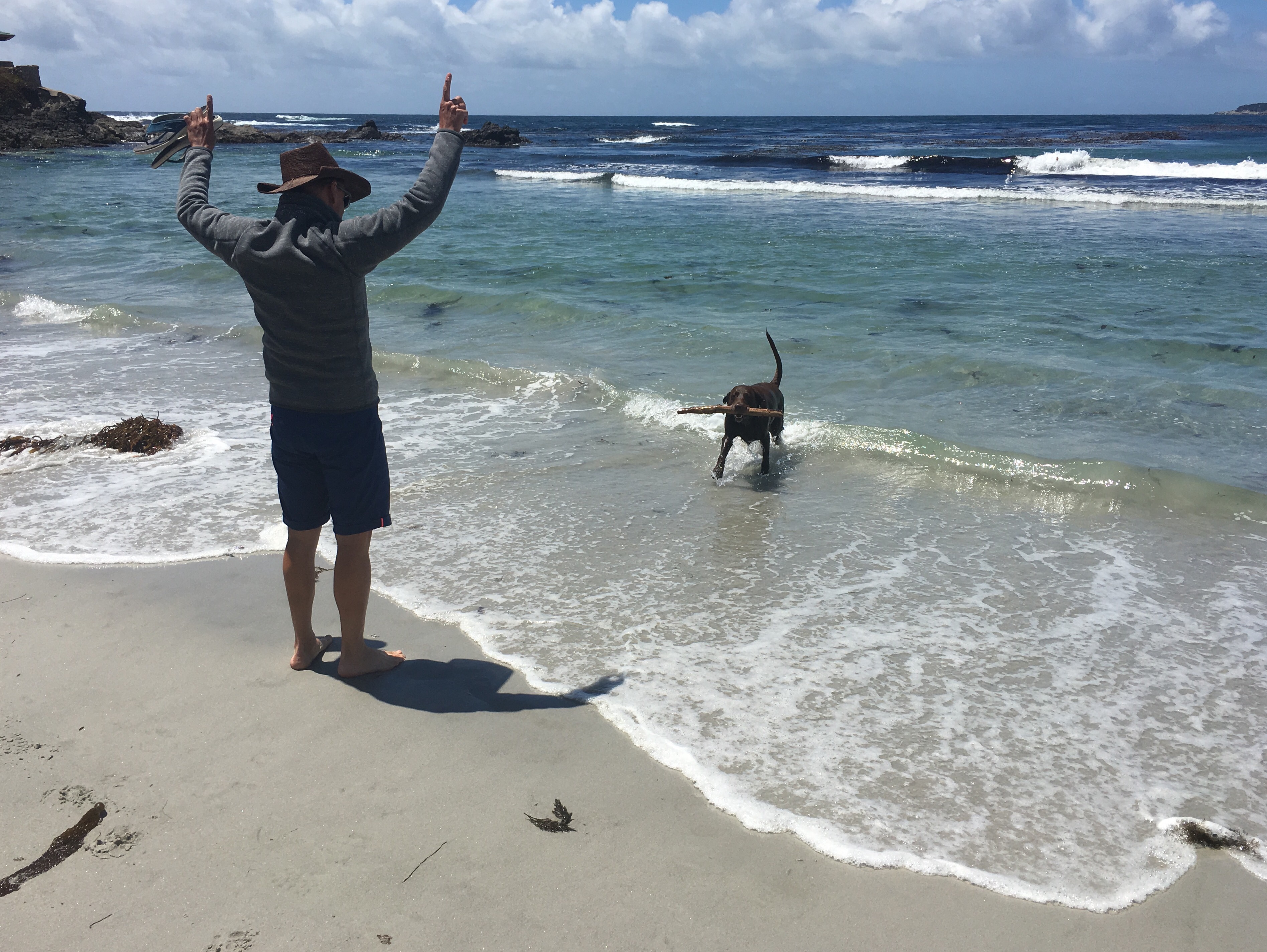 I had just finished my quarter hounder (see earlier post) and was wondering how the day could get any better when we stopped at my favorite place: Carmel Beach!!!