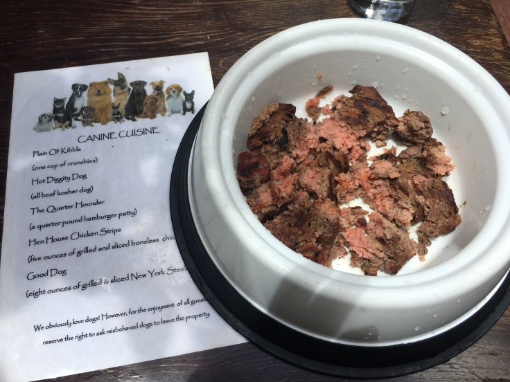 Can you guess what we discovered today? A restaurant that has a menu just for dogs!! Canine Cuisine!!