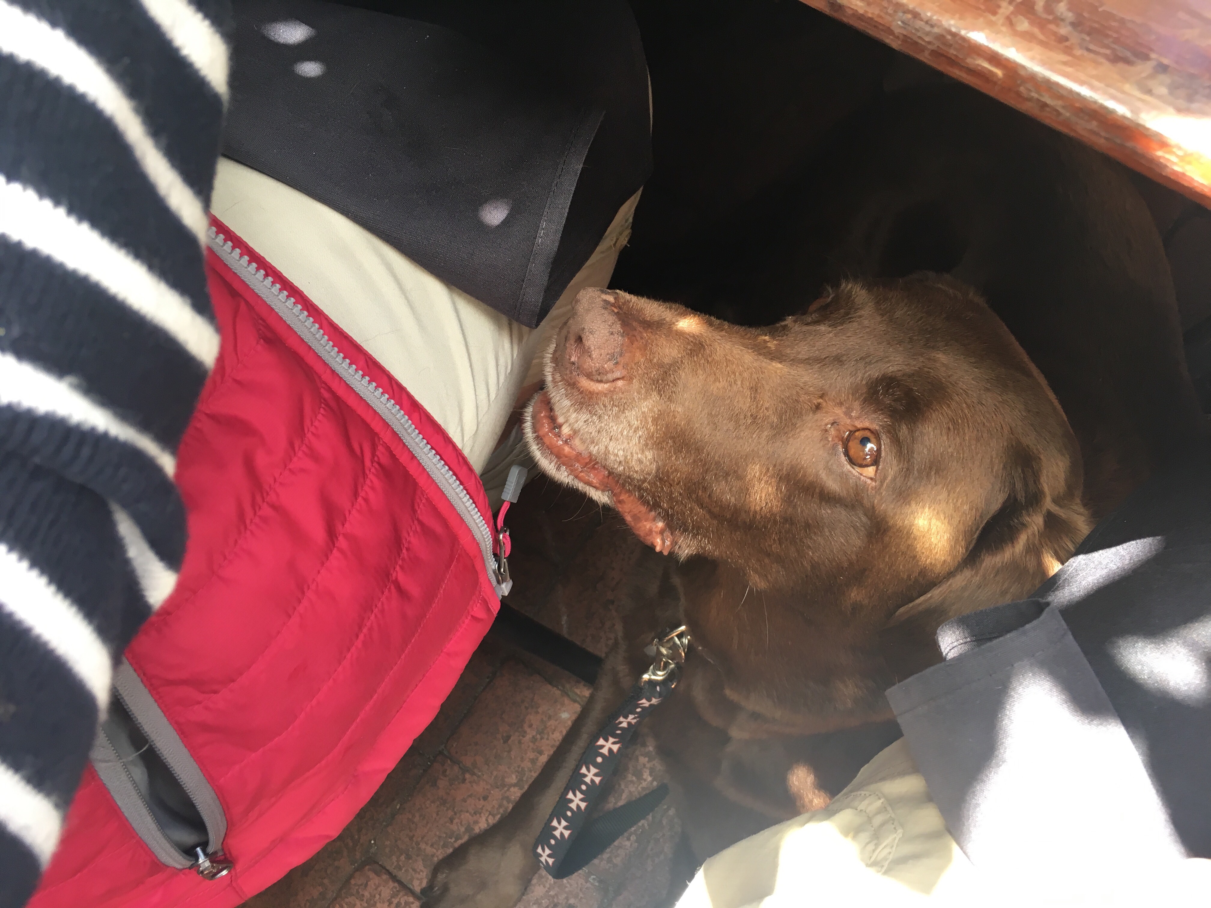 “Look at me Aunty Carol! See how I rest my chin on you? How cute am I? Please reward me with some of your lunch.”