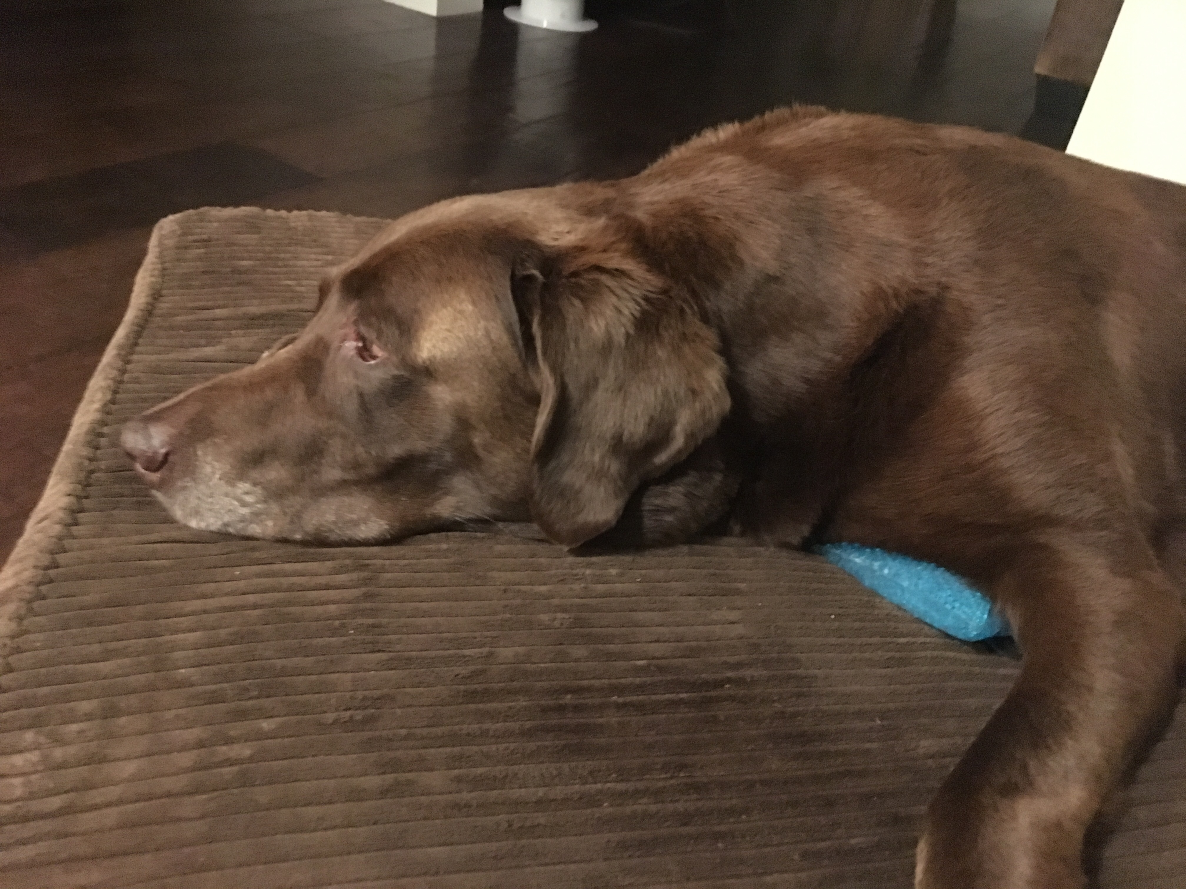 Mummy said we are having record temperatures. Who cares???!! All I know is that at times like this I wish I was one of those hairless dogs, like a Peruvian Inca Orchid. However I am not. Can you believe that I have a double coat?! Great for swimming and cold climates but the completely wrong outfit for a day like today, when it’s 111F. Thank goodness mummy and daddy have an assortment of physiotherapy ice packs from their various sports injuries. They make a great cooling pad for me to lay on, as you can see here. A small icy respite in the furnace of the day!!