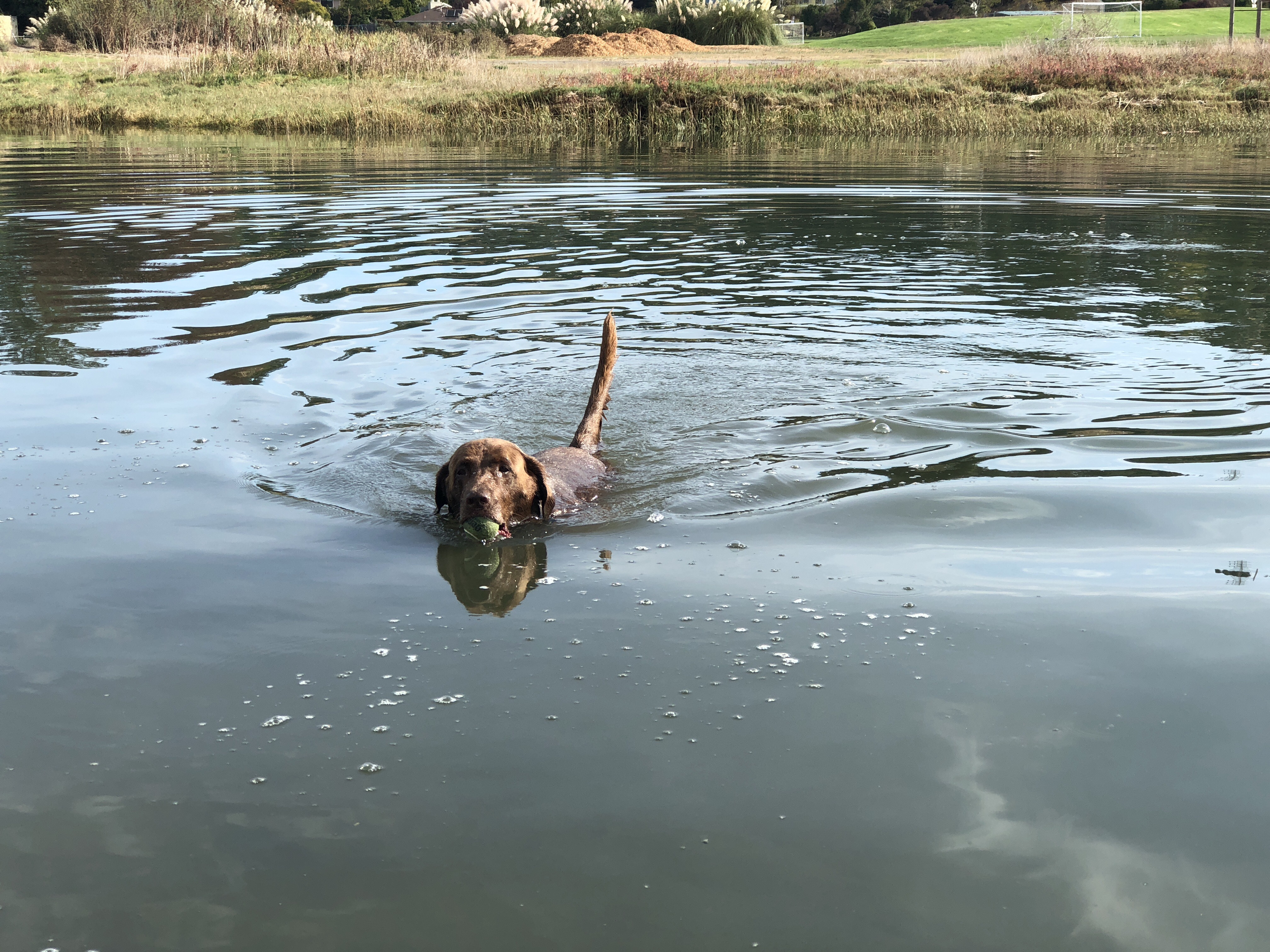 After the spectacular sunrise, everything seemed to proceed just like any other day. Mummy and I went to the Mill Valley Dog Park for some exercise, and just like normal, I went in for a swim even though mummy had expressly told me to stay out of the water. I spent some time swimming around, fetching the ball and enjoying the coolness of the water. Then something new happened!