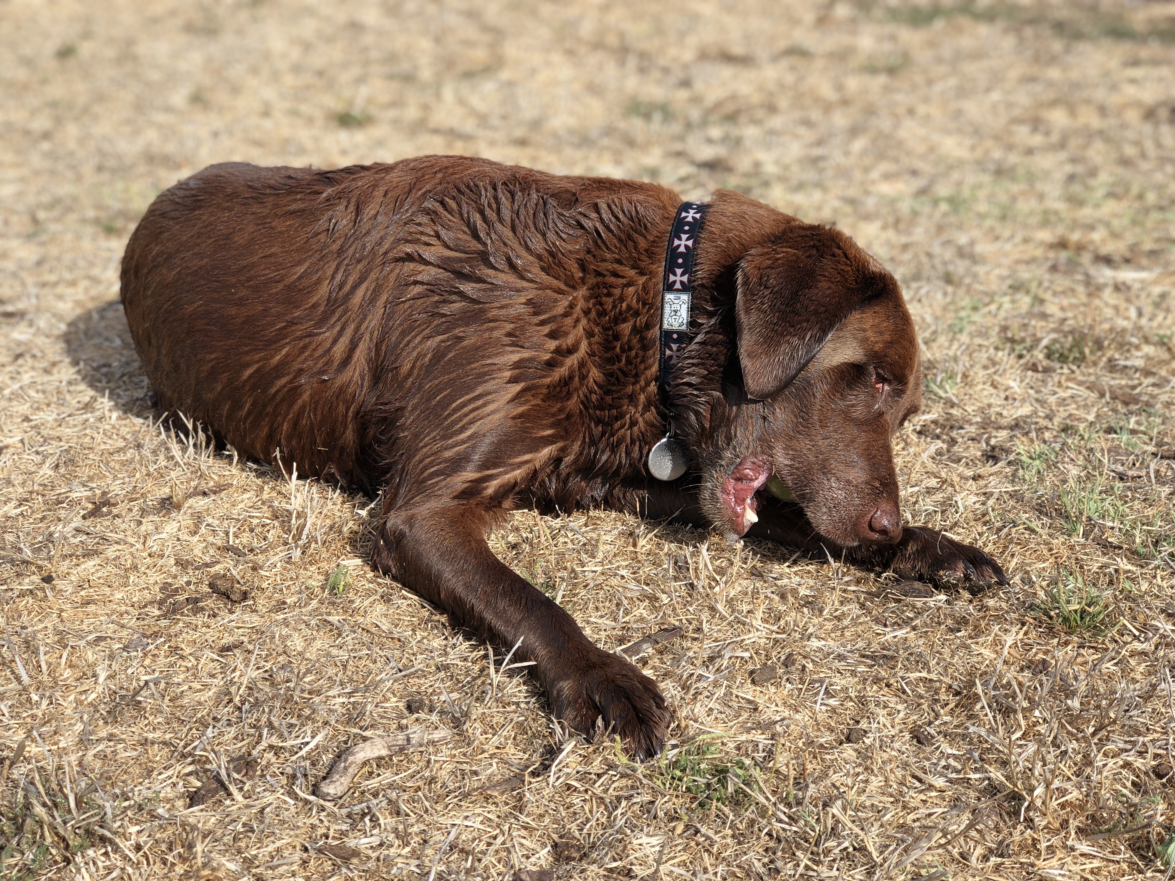 Sadly White Milo couldn’t stay for long and once he left, mummy made me get out of the water. So I spent a little time reminiscing about my new discoveries – a friend, a white me and sharing – while I chewed on my tennis ball. Nothing new there!