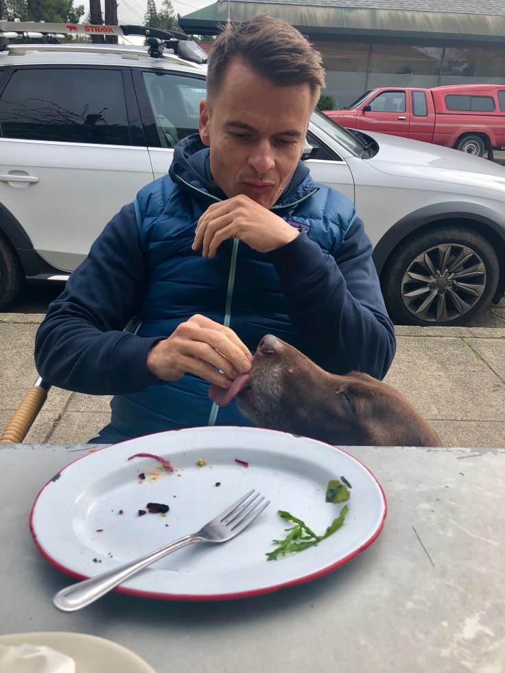 After our walk, mummy and daddy took me for lunch and ordered me my very own plate of bacon! I still wanted some of daddy’s lunch though. I stared at him intensely, trying to use my Jedi mind tricks to get him to give me food.